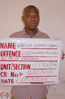 Justice Sabiu Yahuza of the Federal High Court, Dutse on Tuesday, March 24, 2015 convicted and sentenced one Bello Dominic Oizamisi to one year imprisonment with hard labour on a one-count charge of obtaining by false pretence brought against him by the Economic and Financial Crimes Commission, EFCC.