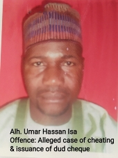 The Kaduna Zonal Office of the Economic and Financial Crimes Commission, EFCC, on Thursday November 5, 2020 arraigned one Alhaji Umar Hassan Isa before Justice Mohammed Tukur of the Kaduna State High Court sitting in Kaduna on a six count charge bordering on cheating and issuance of dud cheque.