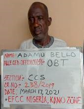 The Economic and Financial Crimes Commission (EFCC) on Thursday March 18, 2021 arraigned one Adamu Bello before Justice Ado Yusuf Birnin Kudu of Jigawa State High Court on one count charge bordering on obtaining by false pretence.