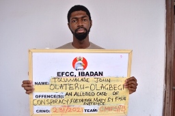 The Economic and Financial Crimes Commission, EFCC, Ibadan Zonal Command on Tuesday, October 12, 2021, arraigned one Toluwalade John Olateru Olagbegi before Justice Uche Agomoh of the Federal High Court one sitting in Ibadan on one count charge bordering on obtaining money by false pretence to the tune of Thirty Five Million Five Hundred Thousand Naira (N35,500,000:00) .