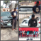 Among items recovered from them at the point of arrest are mobile phones, laptop computers and three luxury cars- a Mercedes Benz CLA 250, Mercedes Benz GLK 350 and Toyota Venza.