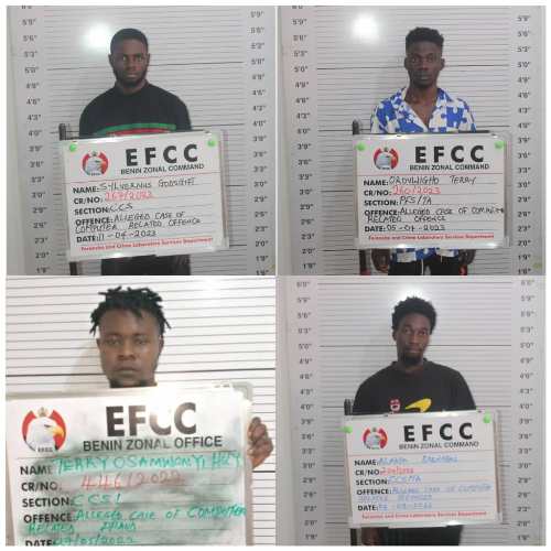 Fifteen internet fraudsters - Emmanuel Ebushi, Omamurhomu Daniel, Ekeh Michael, Amhazioya Christian, Happy Daniel, Ndudi Justice Monday, Ese Collins Oyeide, Prosper Oghenewero Oghenemarho, Terry Orovwigho, Alapka Barnabas, Aro Oluwaferanmi, Godsgift Sylvanus, Oyeide Clement, Osamwonyi Terry Holy, and Emakpore Efetobor were on Thursday June 8 and Friday June 9, 2023 convicted and sentenced to prison by Justice M. Itsueli of Edo State High Court sitting in Benin City.